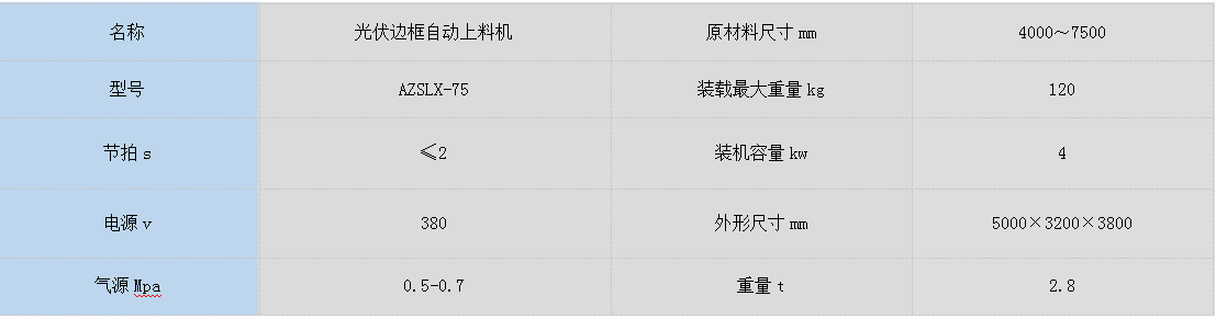AZSLX-75光伏邊框自動上料機是我公司2024年推出的新產(chǎn)品。該產(chǎn)品通過自動化技術(shù)實現(xiàn)了邊框原料的自動上料,為邊框生產(chǎn)環(huán)節(jié)提供了穩(wěn)定可靠的物料輸送解決方案。其智能化操作可有效提升生產(chǎn)效率,降低人工勞動強度。